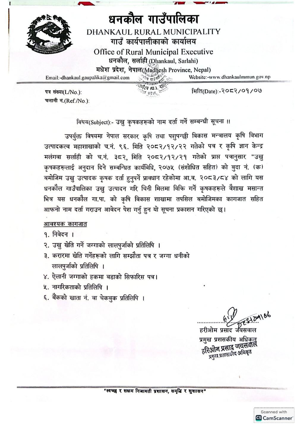 उखु कृषकहरूको नाम दर्ता गर्ने सम्बन्धी सूचना !!