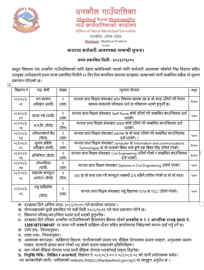करारमा कर्मचारी आवश्यक्ता सम्बन्धी सुचना।