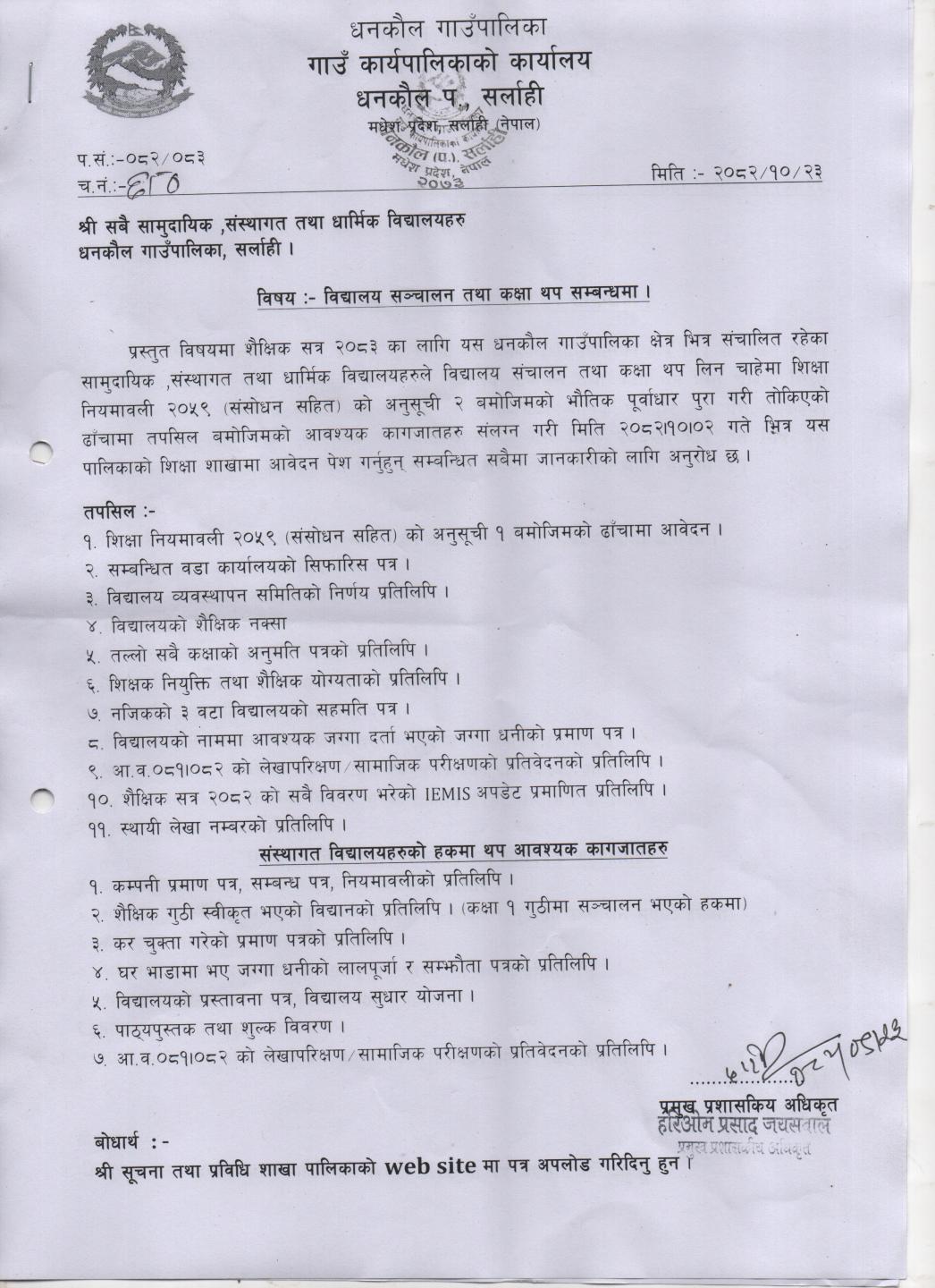 » विद्यालय संचालन तथा कक्षा थप सम्बन्धमा